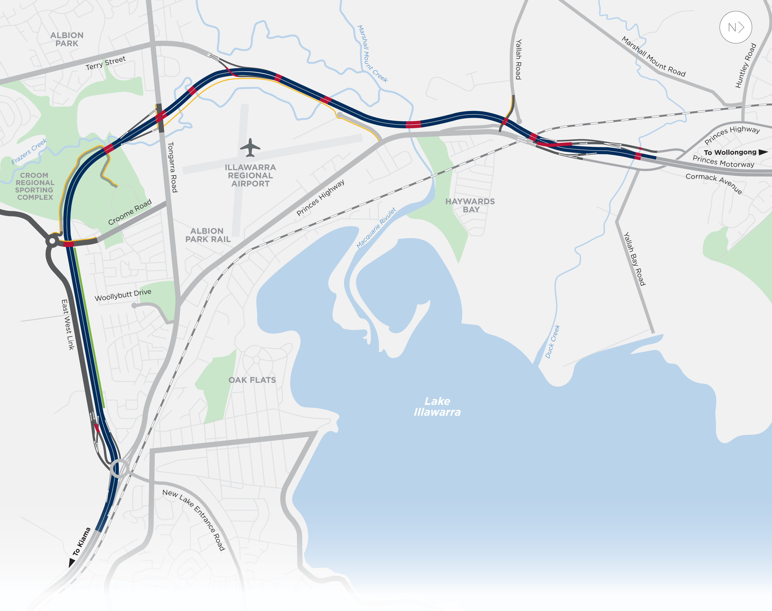 Transport for New South Wales is building an extension of the M1 Princes Motorway between Yallah and Oak Flats to bypass Albion Park Rail. The NSW Government is funding the $630 million project.