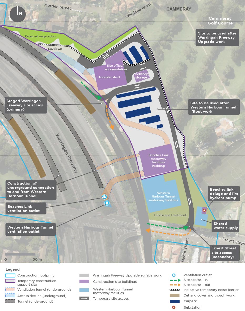 Cammeray Golf Course. The site would initially be established as a temporary site for the Western Harbour Tunnel and Warringah Freeway Upgrade project, and construction and fitout of motorway facilities at Warringah Freeway.