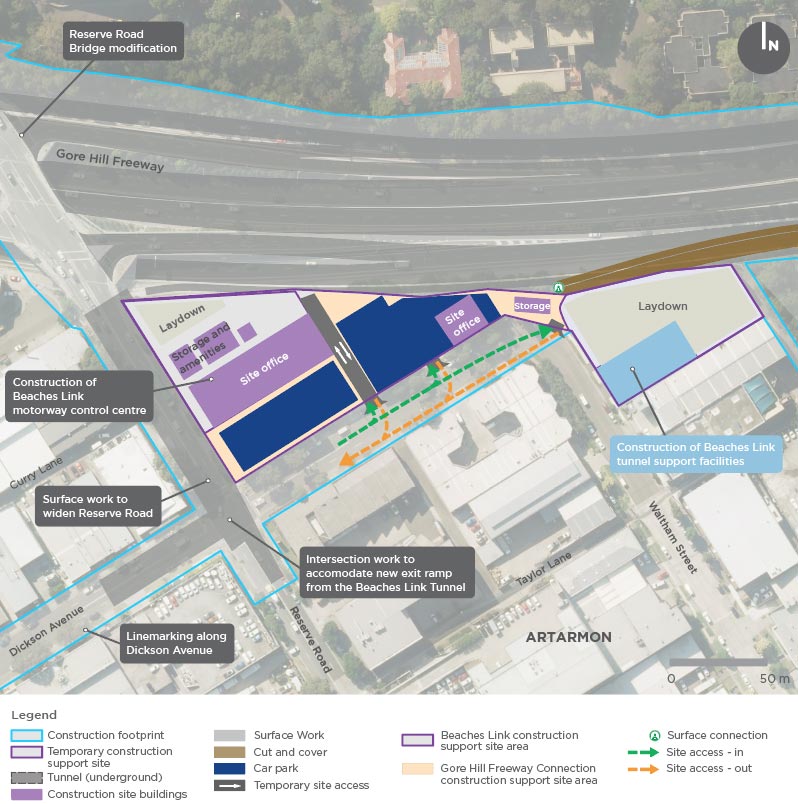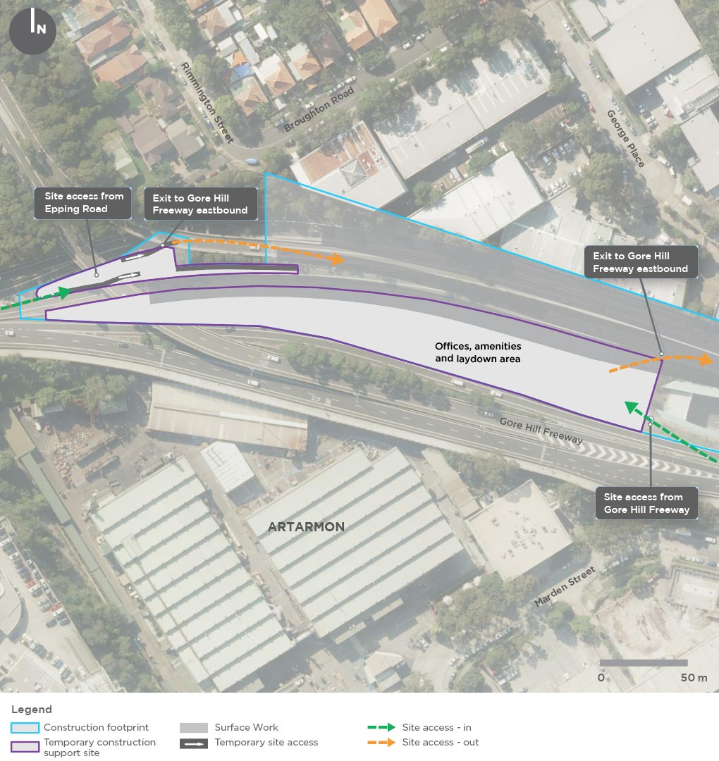 We will be setting up a temporary support site at Dickson Avenue within the Artarmon industrial area to support construction of Beaches Link and the Gore Hill Freeway Connection.