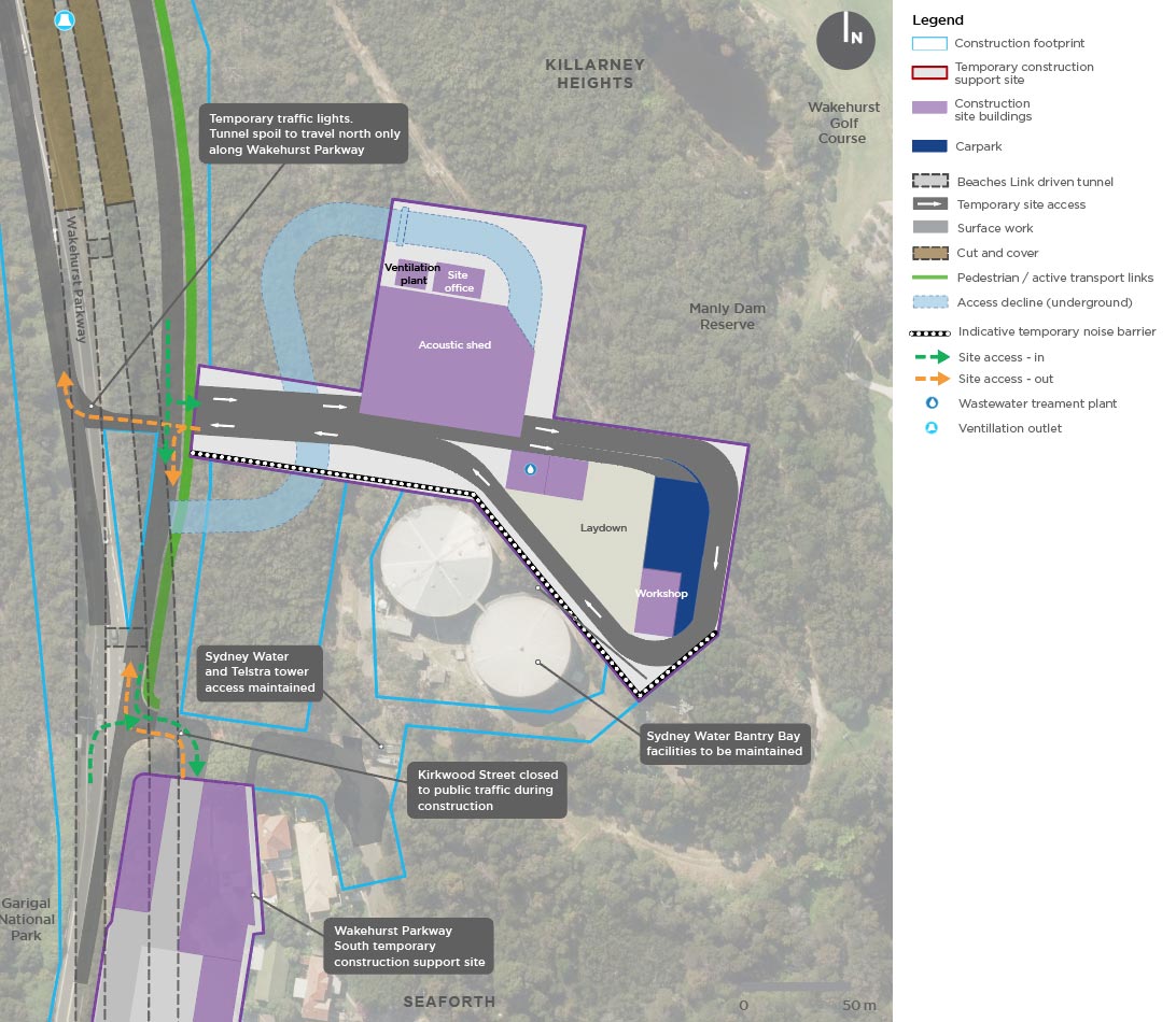 We will be setting up a temporary construction support site along Wakehurst Parkway to support the upgrade of Wakehurst Parkway, the construction of the cut and cover structure, trough and motorway facilities, and provide additional support for tunnelling work at the Wakehurst Parkway east construction support site.