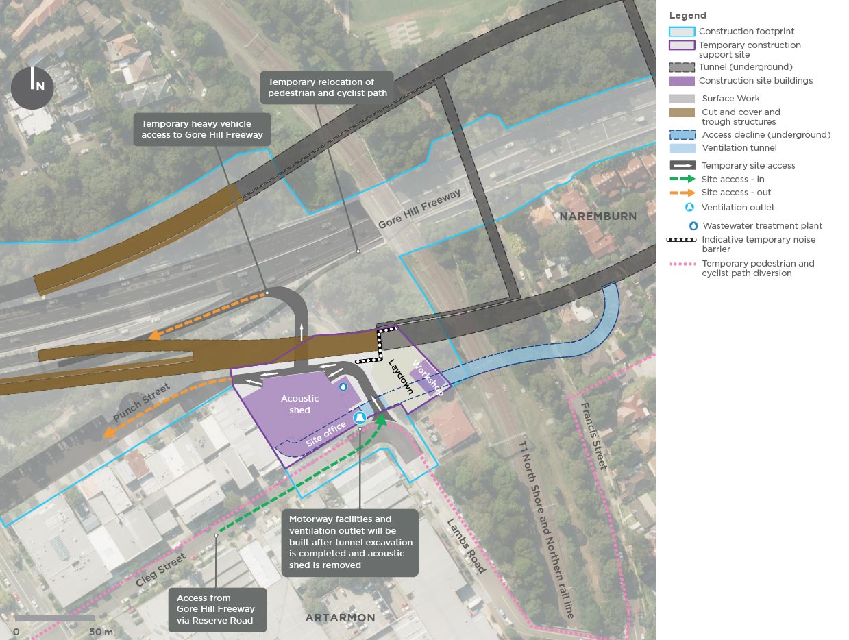 This site will support the construction of the tunnel ramps between Wakehurst Parkway and the underground connection to the main tunnel.
