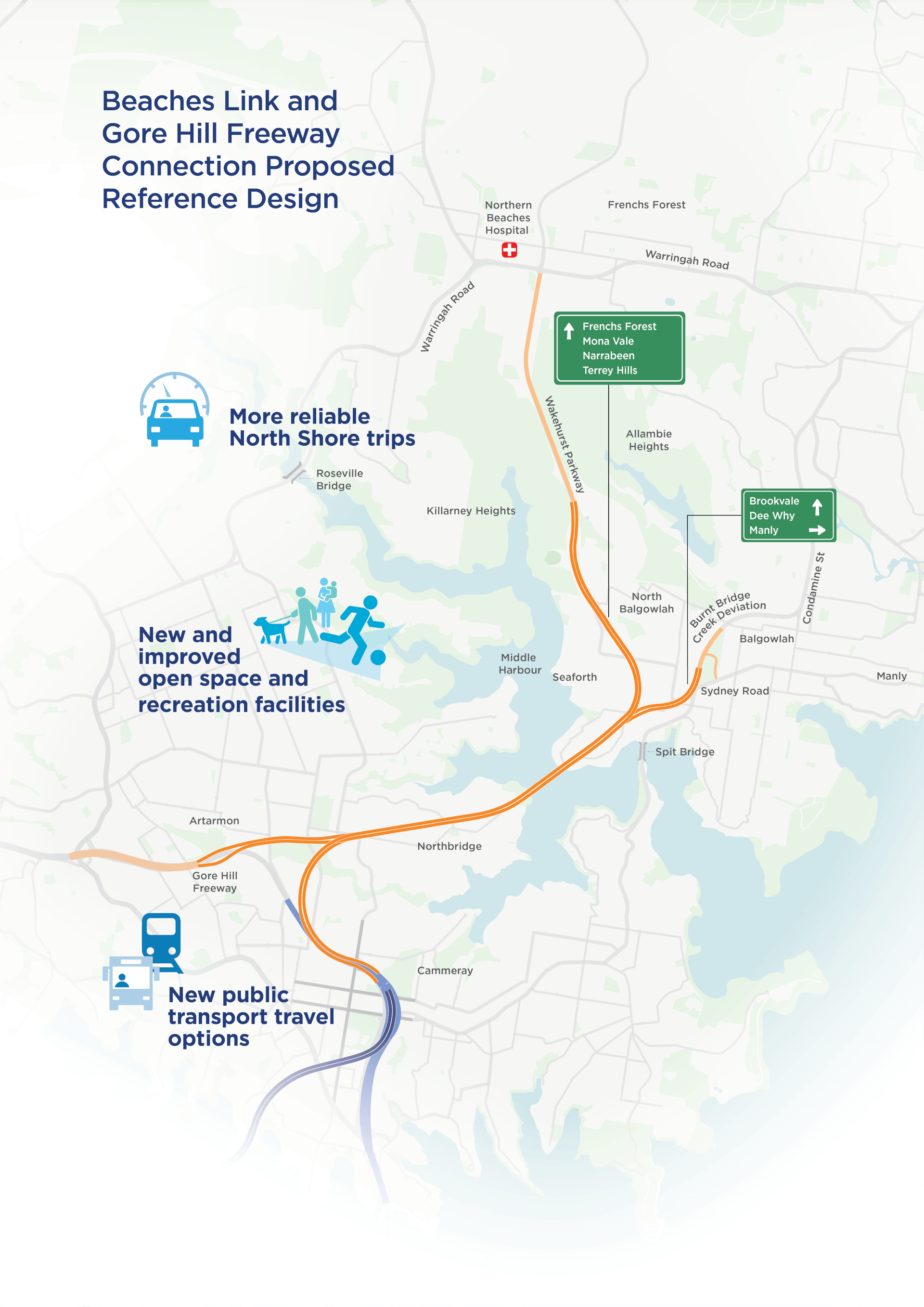 The Beaches Link and Gore Hill Freeway Connection is an important part of our vision to create an integrated road and public transport network, ensuring Sydney is a well-connected and liveable city for generations to come. A city-shaping project, this new motorway will change the way you travel to and from the Northern Beaches.