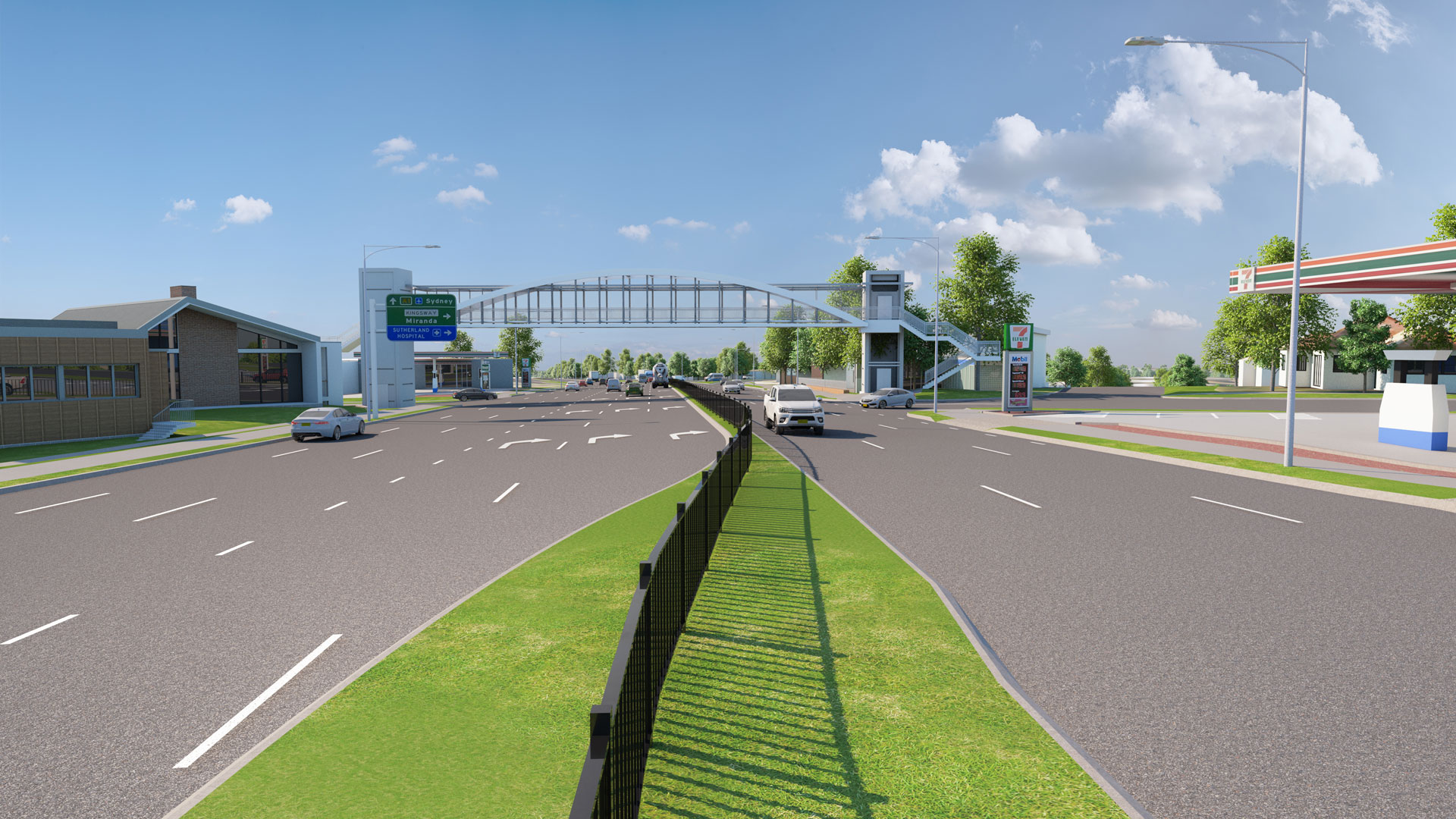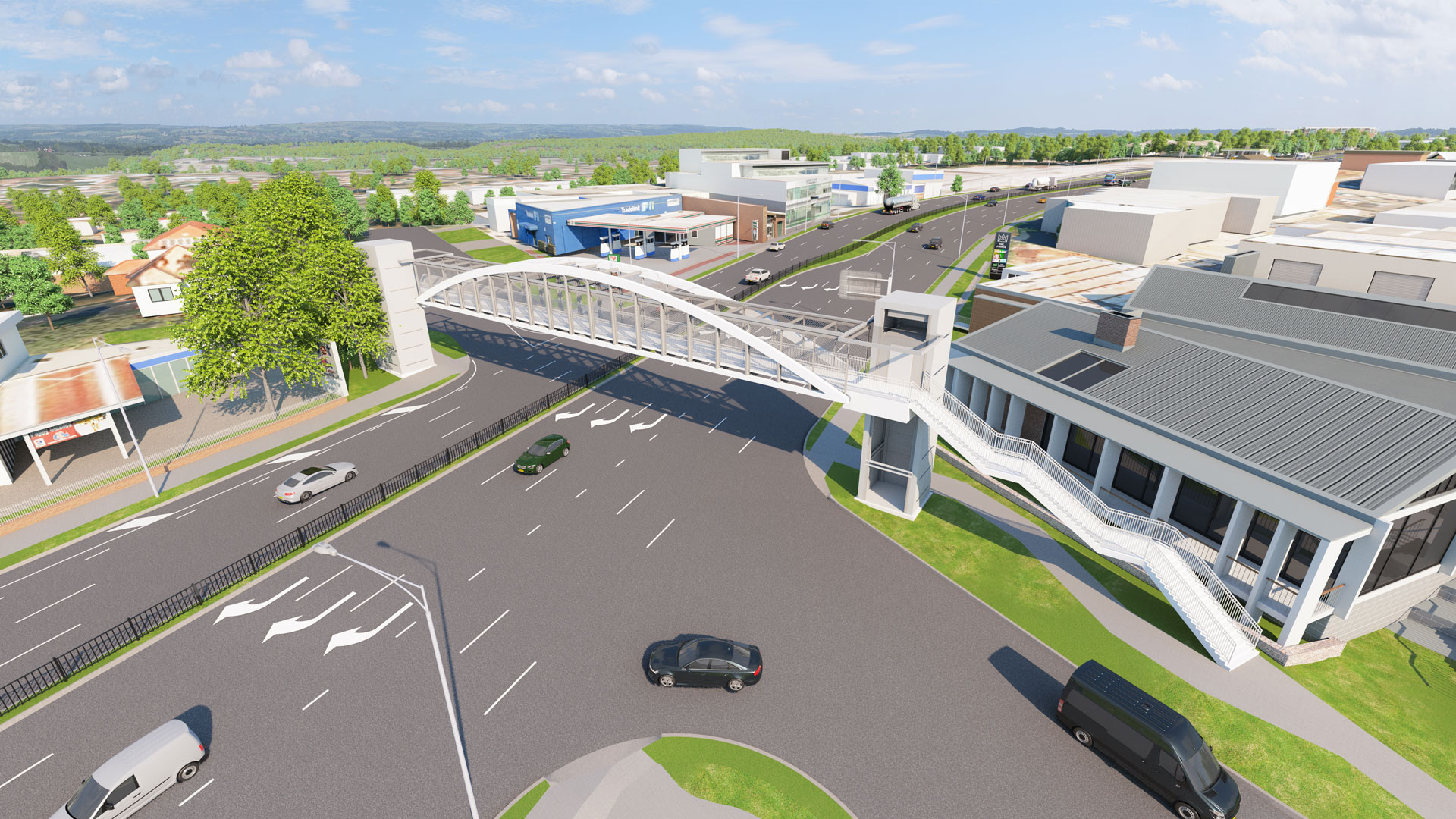 Drag the slider from left to right to compare the road design with and without the new pedestrian bridge.