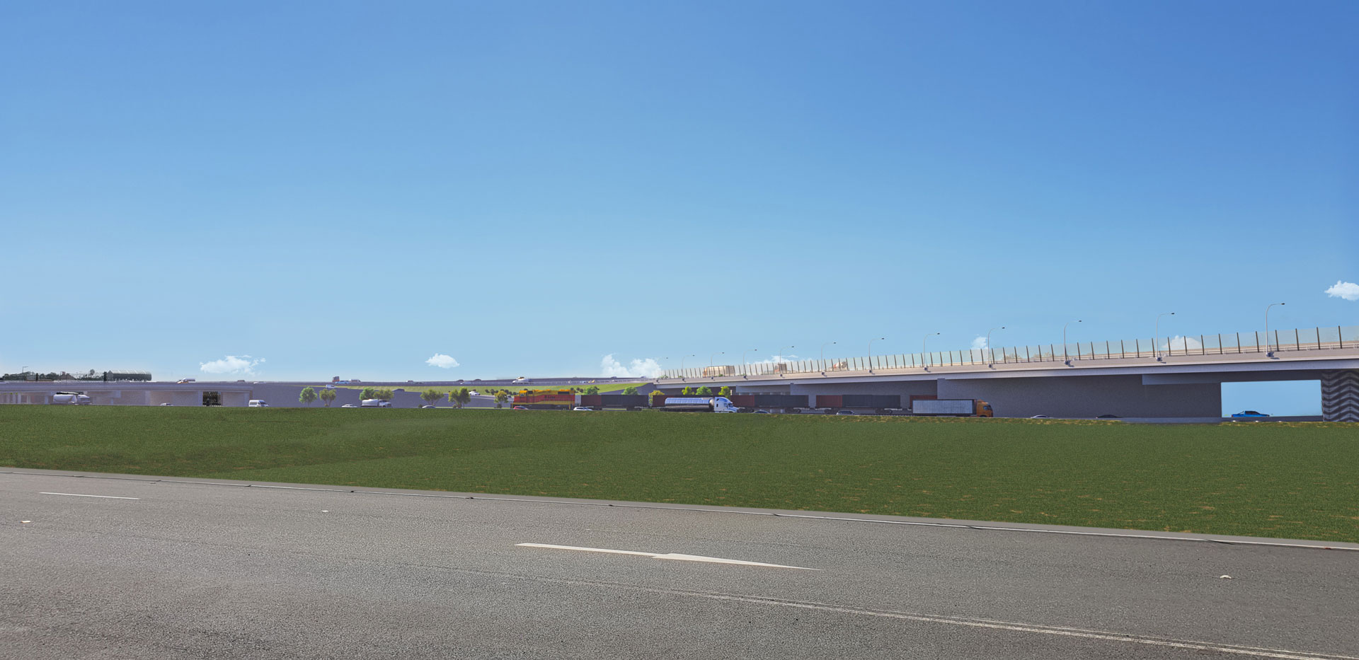 The freight bridge will be two lanes in each direction over Alexandra Canal. It will provide dedicated access for airport freight vehicles into Link Road.