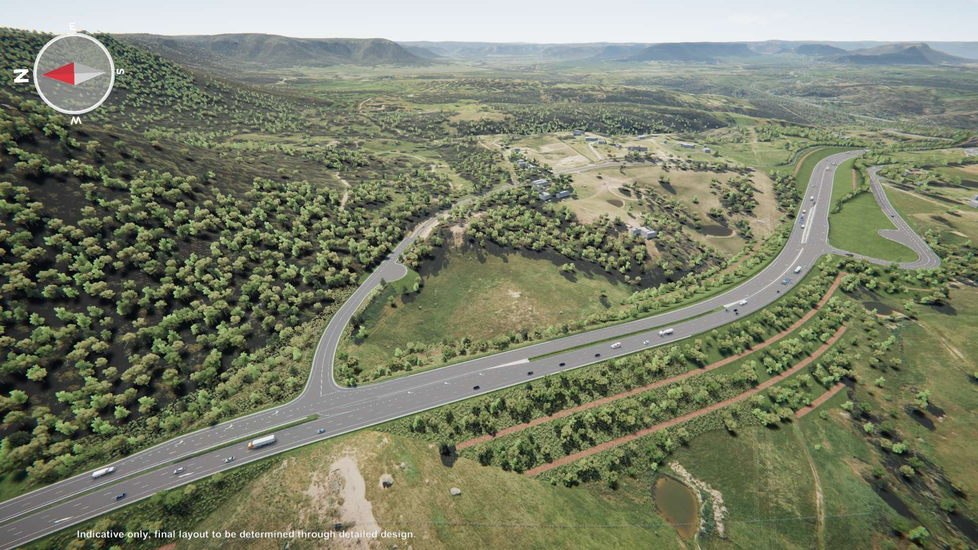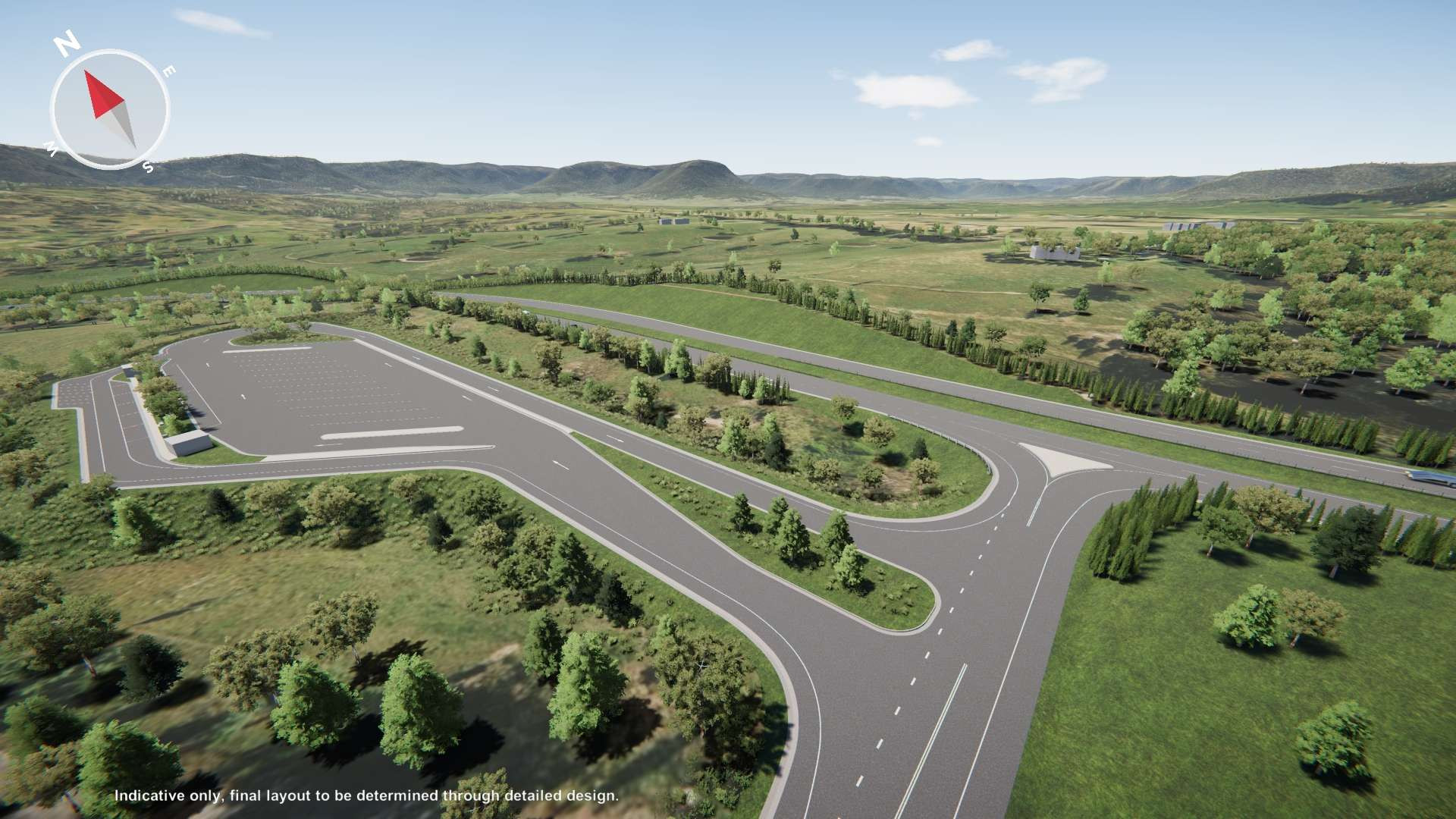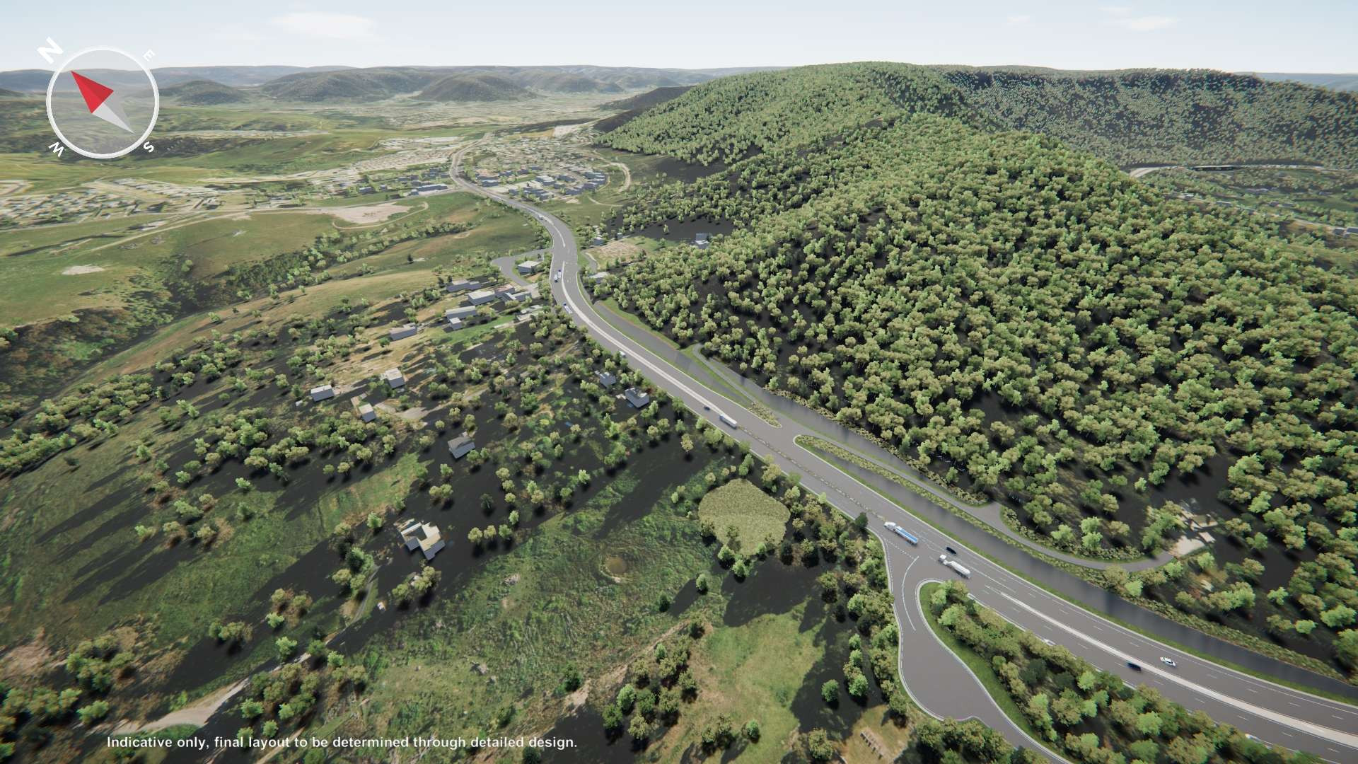 Drag the slider from the left to right to compare the existing road layout with the proposed design.