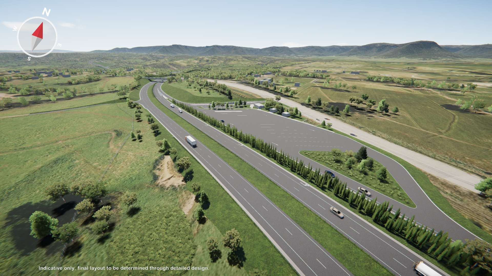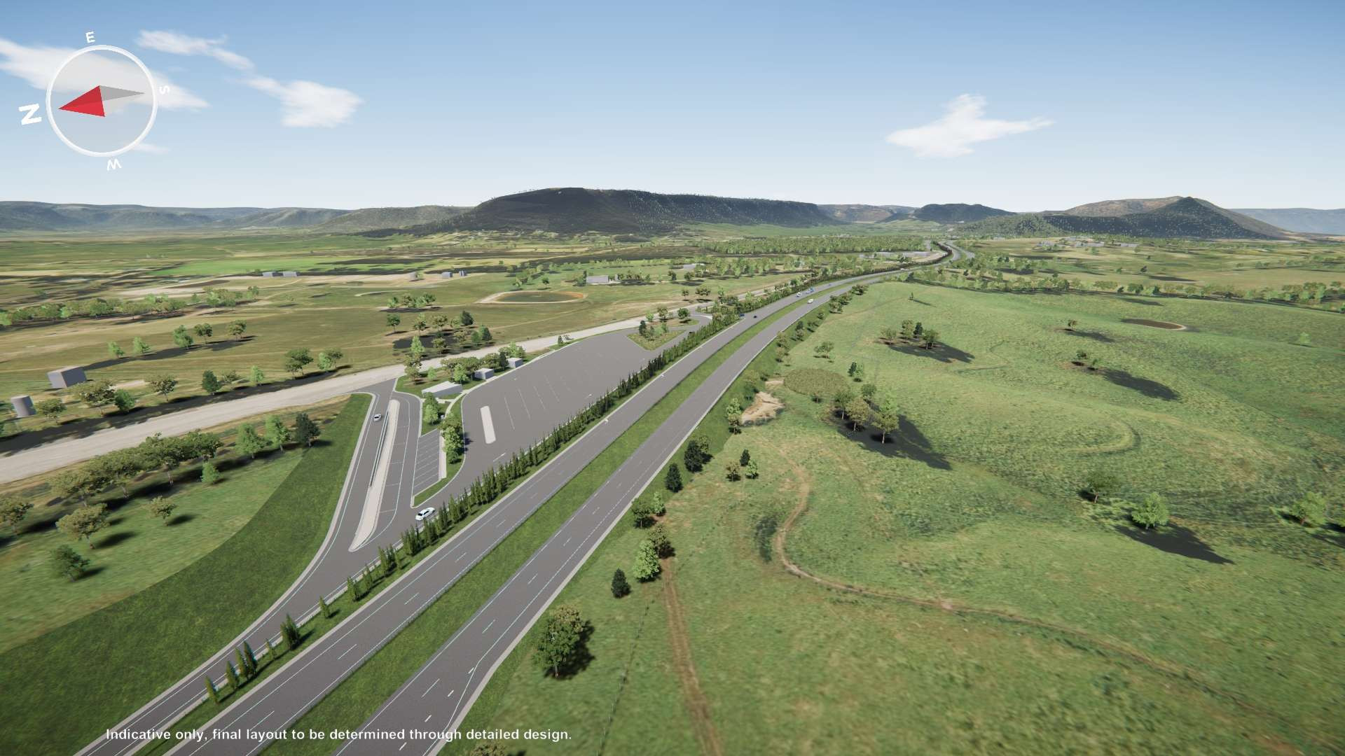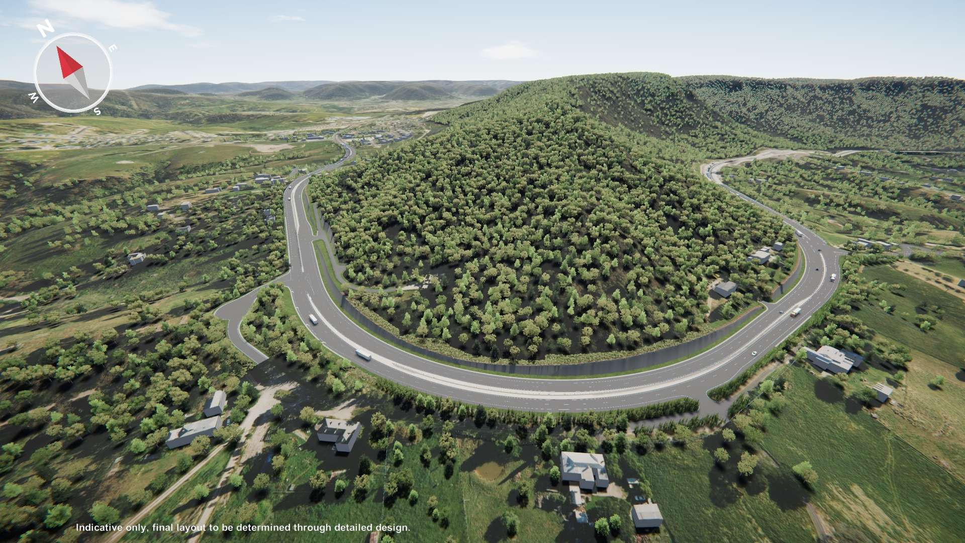 Drag the slider from the left to right to compare the existing road layout with the proposed design.