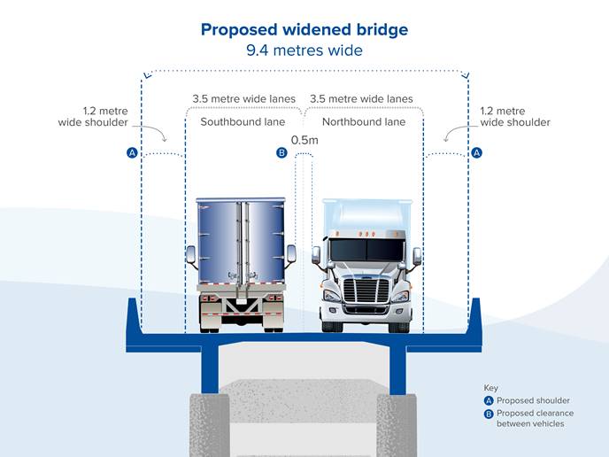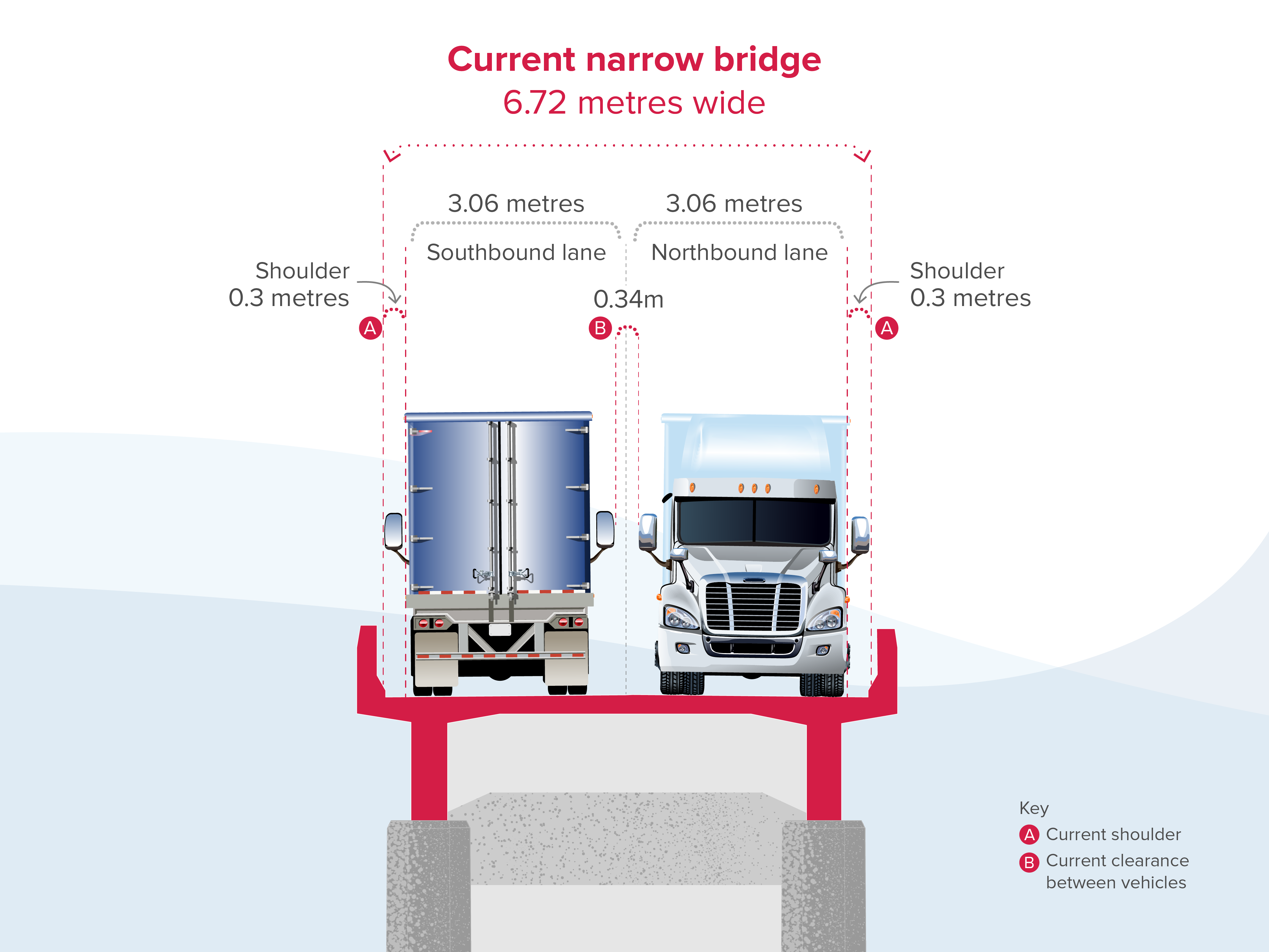 Drag the slider from left to right to compare the current narrow bridge with the proposed widened bridge.