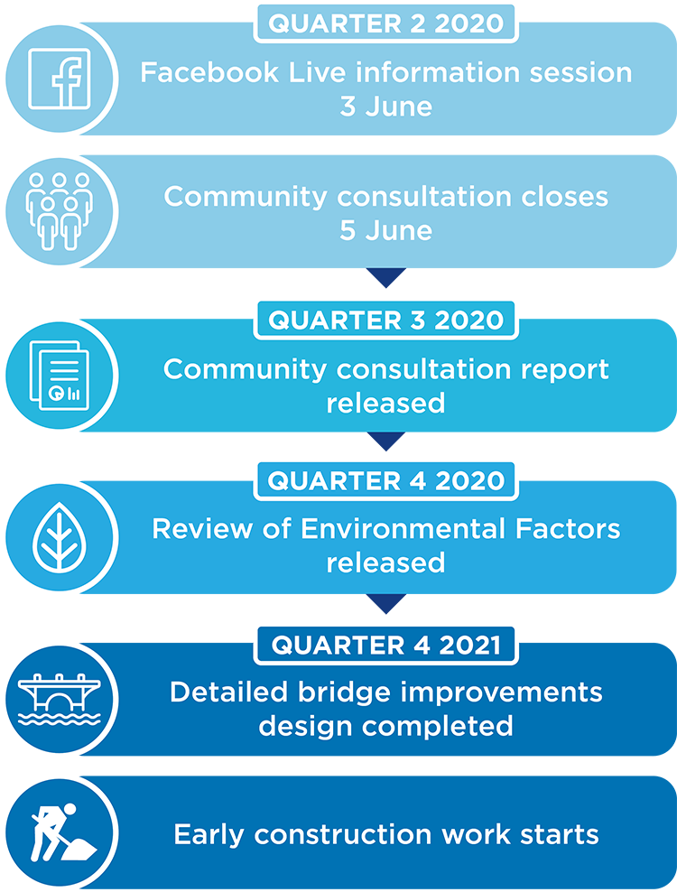 Protected microbats, Southern Myotis (vulnerable in NSW) were identified in the bridge scuppers. We’ll have a microbat management plan with input from microbat specialists to provide habitat throughout construction.