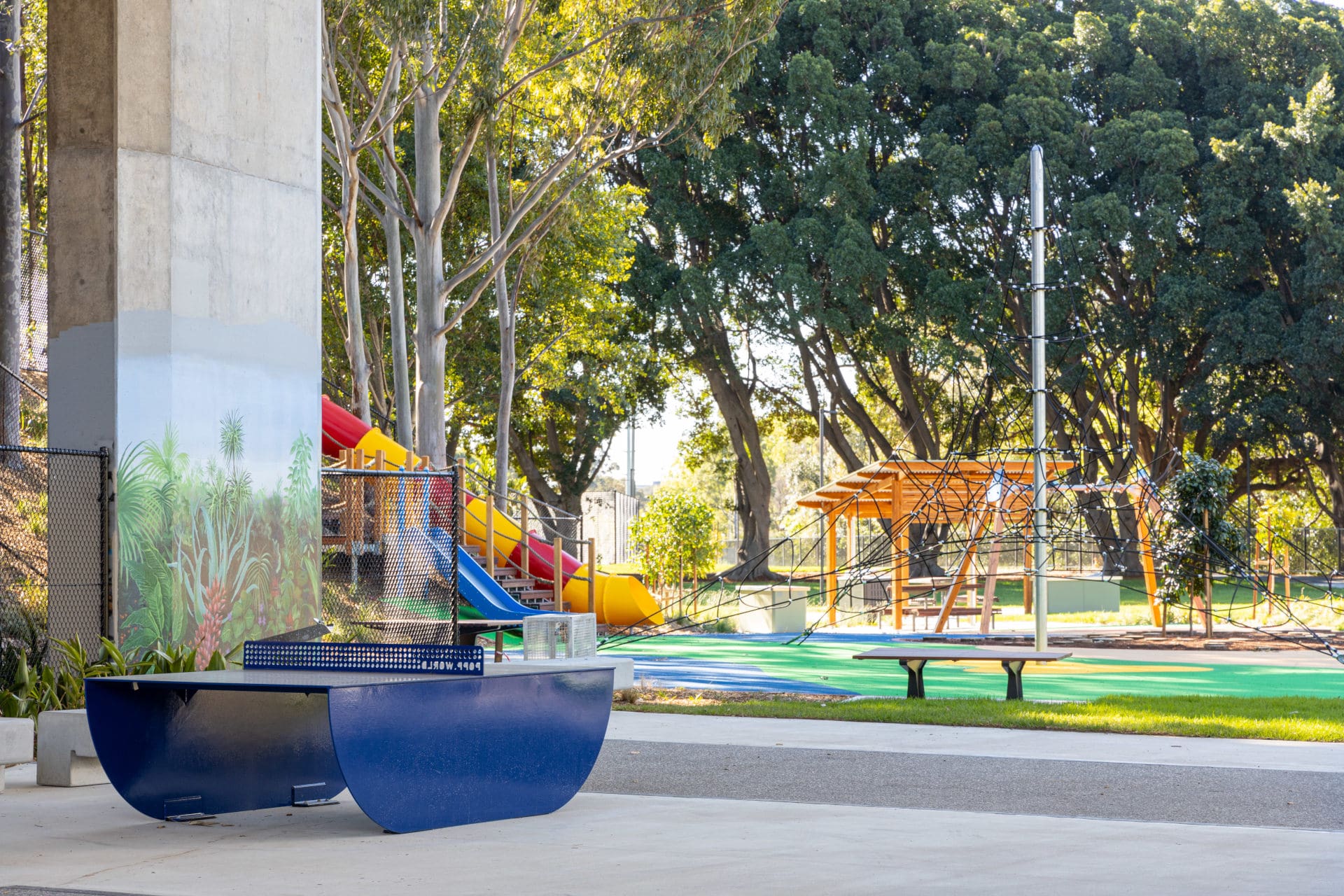 The new playground is designed for accessible, inclusive and imaginative play, with tailored spaces for low play and wheelchair access, gradually increasing in height for advanced play. The playground has been co-created with the community, including a series of community engagement workshops with St Peters Public School students who contributed ideas that were incorporated into the final design.