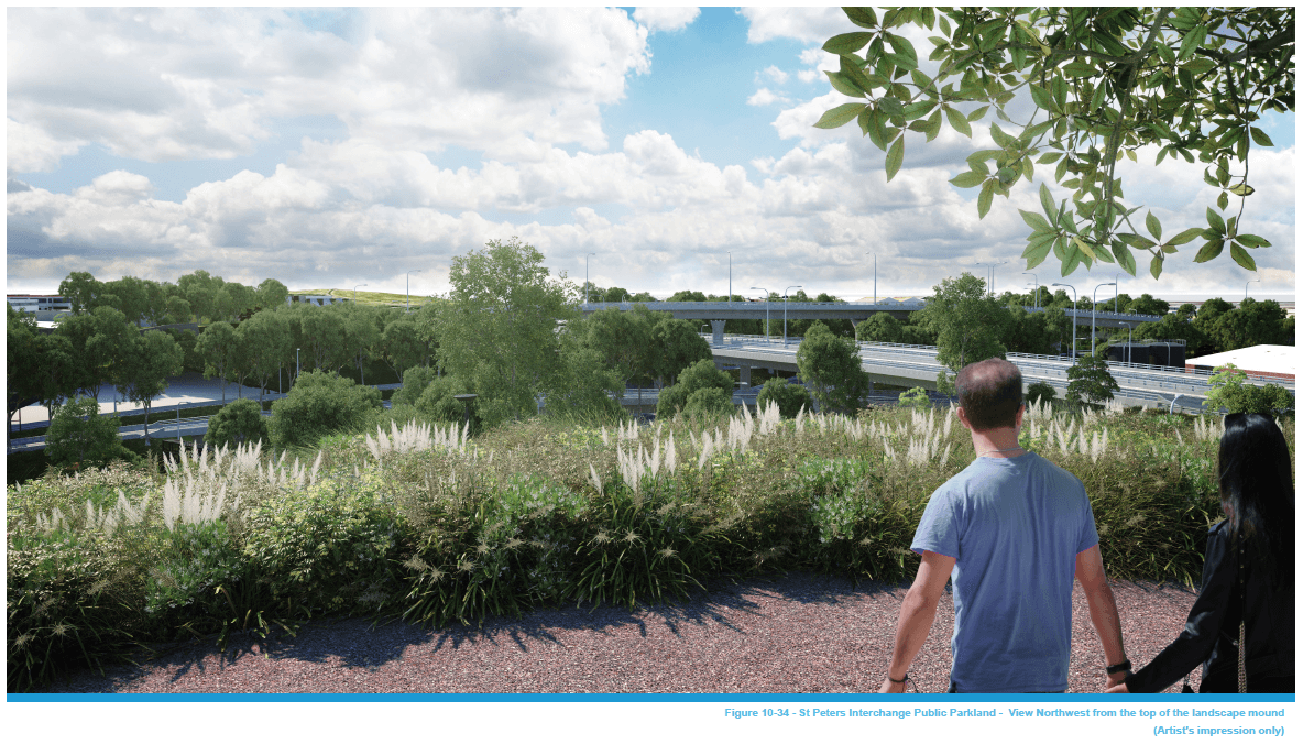 The work is located at St Peters Interchange and is intended to increase acces and engagement to Indigenous history and culture for diverse audiences to enjoy..
